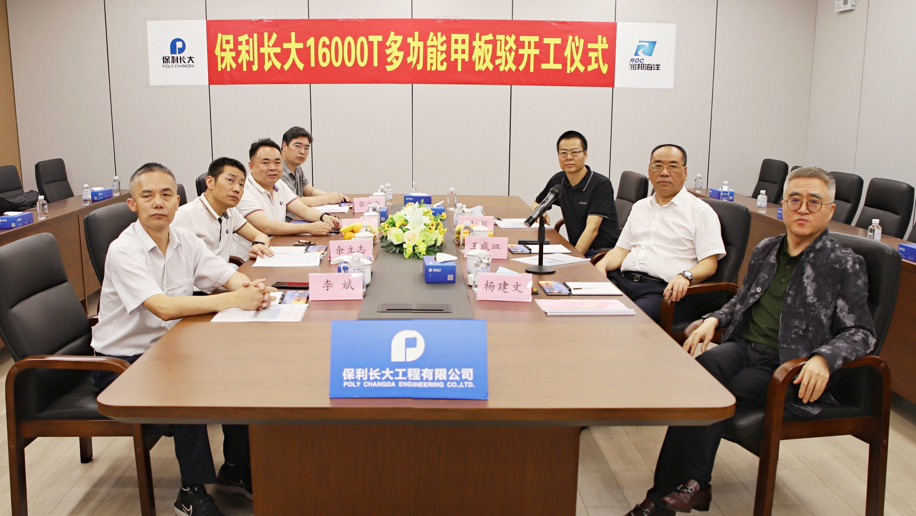 4月28日上午10點18分,潤邦海洋承接的“保利長大16000噸多功能甲板駁項目”正式開工。保利長大工程有限公司總經(jīng)理王成皿、副總經(jīng)理楊建文、機材部總經(jīng)理閆利,港航分公司總經(jīng)理余立志、黨總支書記李斌、副總經(jīng)理曾江峰、裝備物資部經(jīng)理張公安,CCS代表、上海佳豪設(shè)計院院長陳雪峰、潤邦股份董事長、總裁吳建等領(lǐng)導(dǎo)在線上線下參加了開工典禮儀式。
