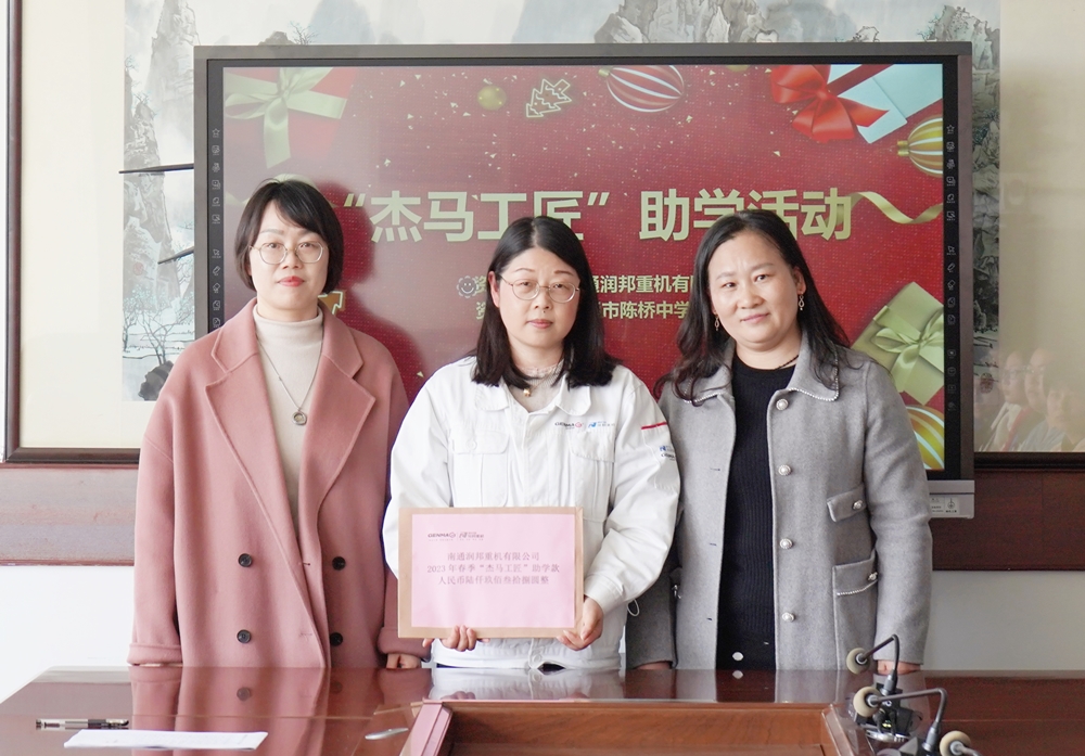 近日,子公司潤邦重機工會主席為崇川區陳橋中學十名品學兼優的貧困學子發放了愛心助學款,并現場囑咐所有學生要堅信“知識改變命運,奮斗成就人生”,只有提高知識儲備,將來才能以更強的實力為社會做貢獻。