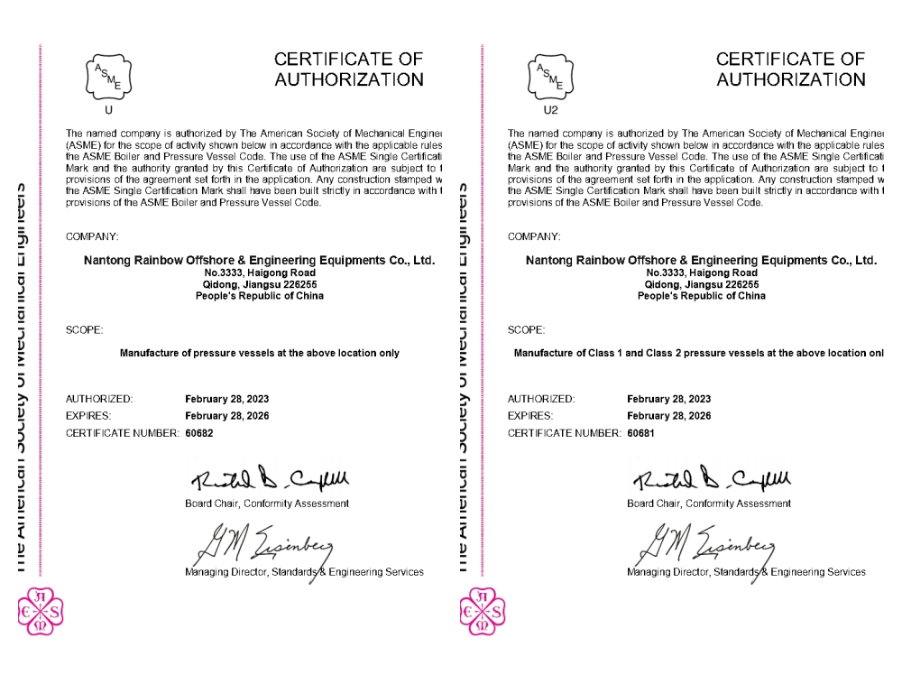本次ASME“U+U2”鋼印取證成功,表明潤邦海洋ASME體系運行完全符合國際ASME規范要求,進一步鞏固了潤邦海洋在激烈市場中競爭的領先地位。