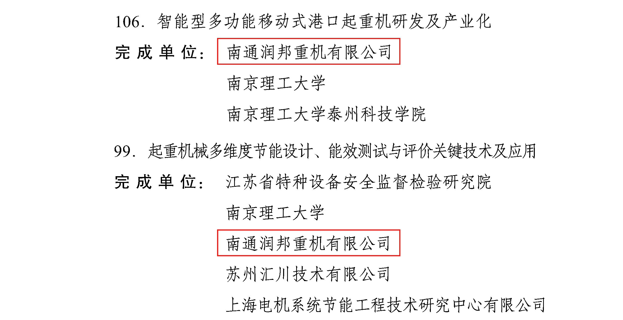 近日,江蘇省人民政府發(fā)布了關于2022年度江蘇省科學技術獎勵的決定,子公司潤邦重機牽頭完成的“智能型多功能移動式港口起重機研發(fā)及產(chǎn)業(yè)化”,以及潤邦重機參與完成的“起重機械多維度節(jié)能設計、能效測試與評價關鍵技術及應用”科技成果榮獲“江蘇省科學技術三等獎”。