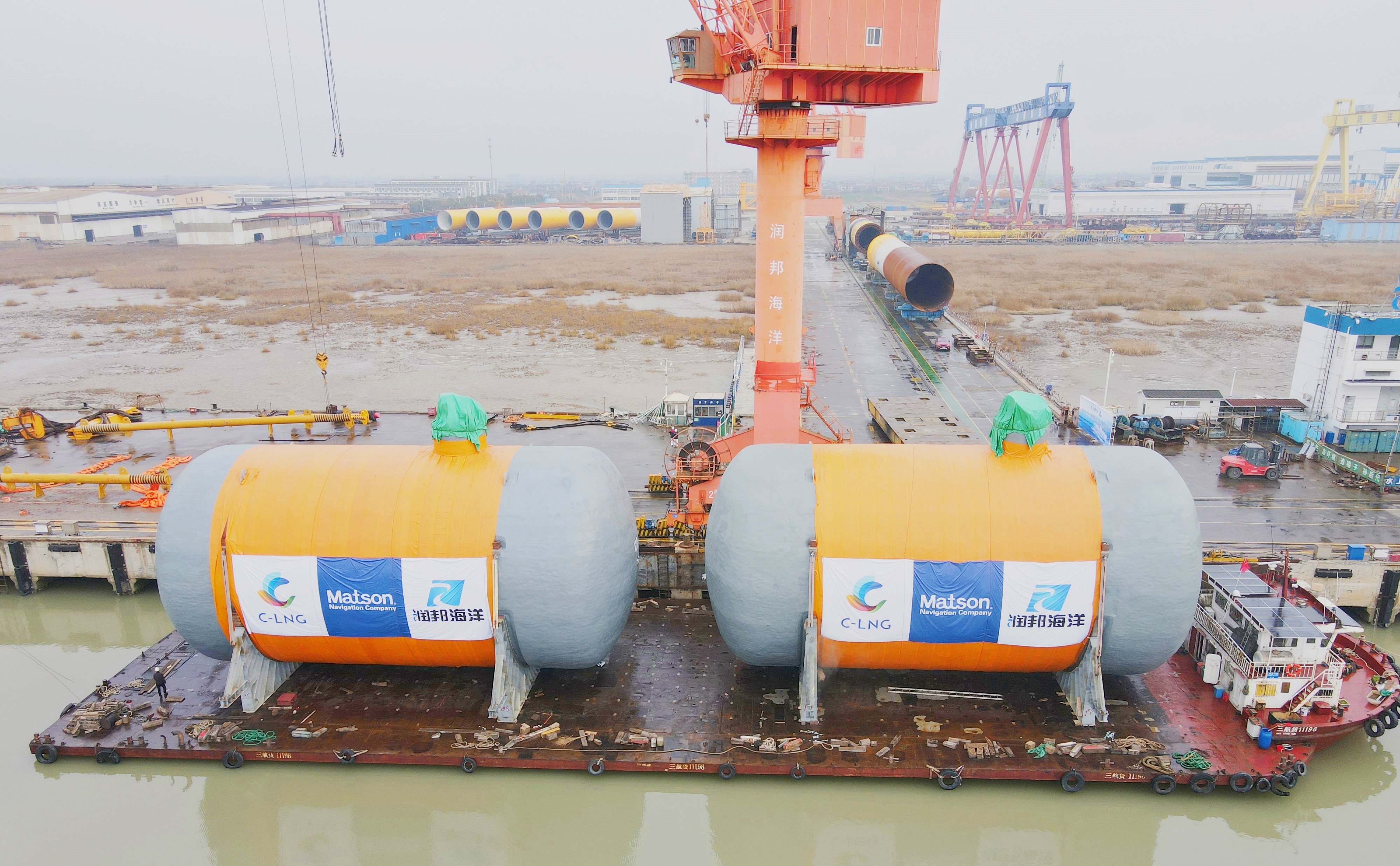 新年伊始,子公司潤邦海洋開工即開弓,近日,潤邦海洋成功交付2臺套LNG不銹鋼燃料罐,吹響了今年交付的號角。
