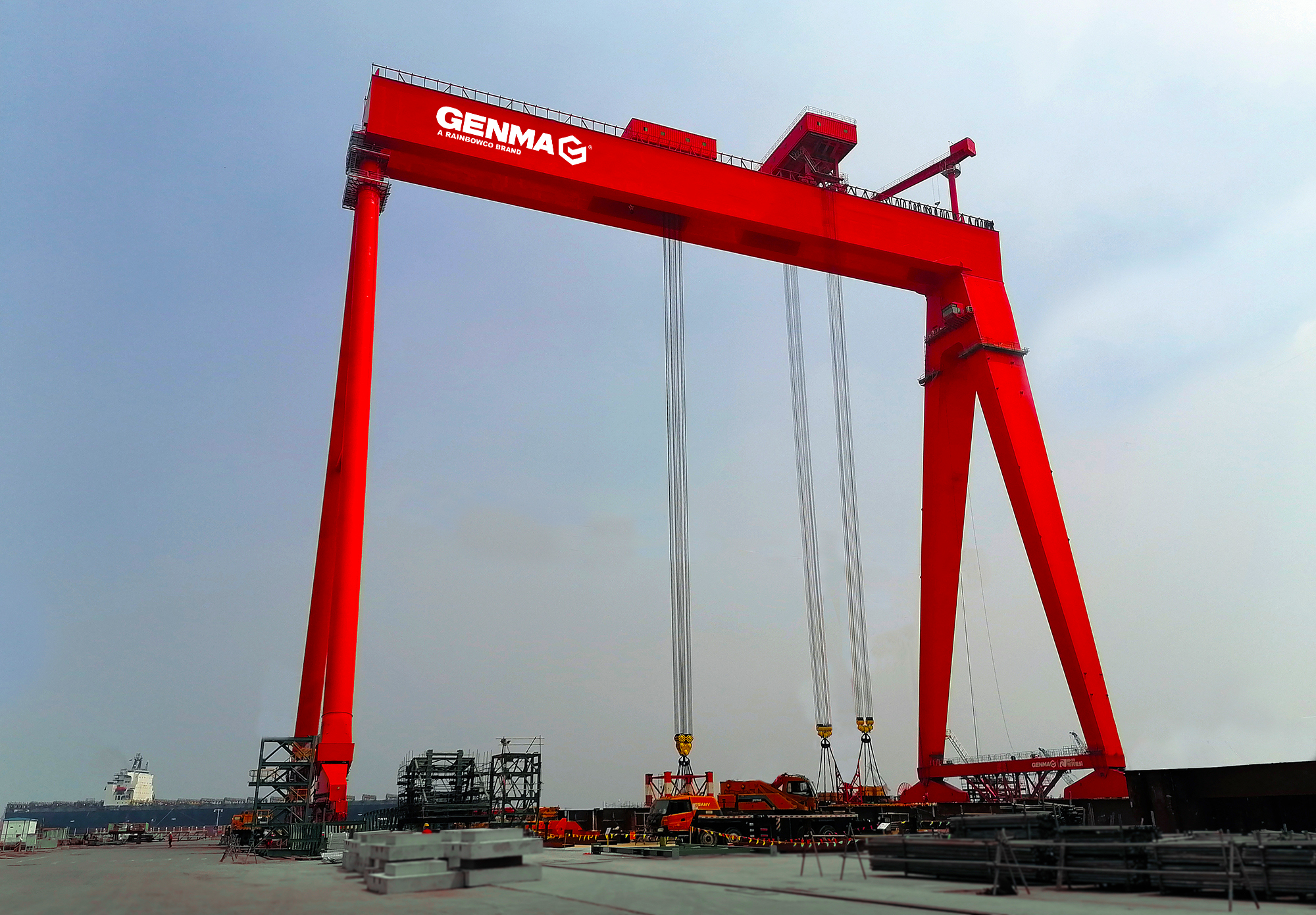 此次中標的GENMA 1200噸造船門式起重機,是潤邦重機在大型造船起重機領(lǐng)域的又一突破。GENMA門式起重機具備強大的起重能力和高度靈活的作業(yè)性能,能夠滿足大型船體分段和重型部件的吊裝需求。