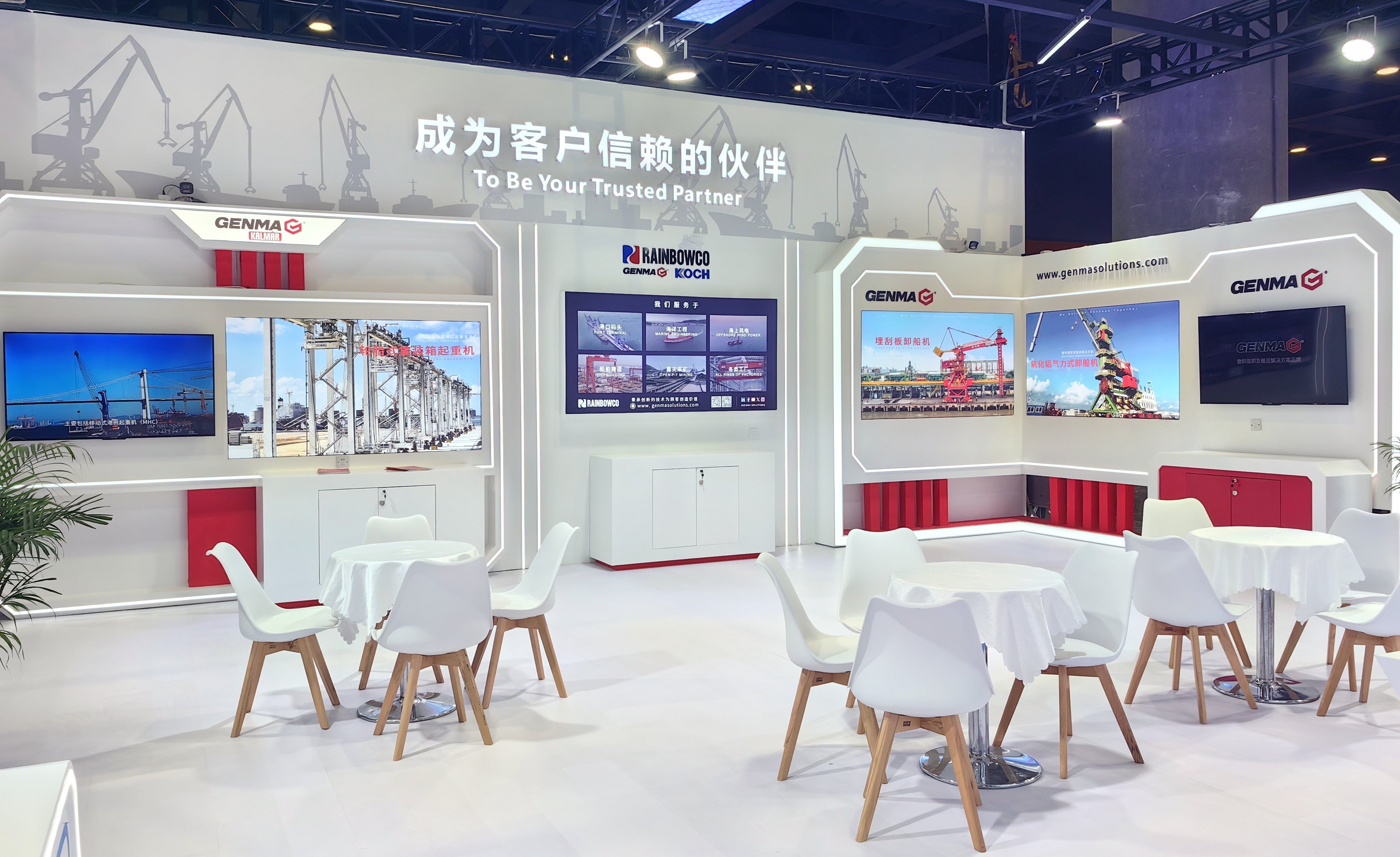From May 14 to 16, 2025, the 5th Guangdong-Hong Kong-Macao Greater Bay Area (Guangzhou) Smart Port and Shipping Exhibition was grandly held at the Poly World Trade Center in Guangzhou. Jiangsu Rainbow Heavy Industries Co., Ltd. (short for RAINBOWCO; Stock Code: 002483), made a high-profile appearance at this global port and shipping industry event with an impressive 135 m2 booth. Featuring innovations from its three core brands - GENMA (GENMA-KALMAR), KOCH, and RAINBOWCO - the Company presented comprehensive smart port solutions for all operational scenarios. Alongside over 320 global industry leaders, RAINBOWCO helped shape a vision for high-quality industry development.