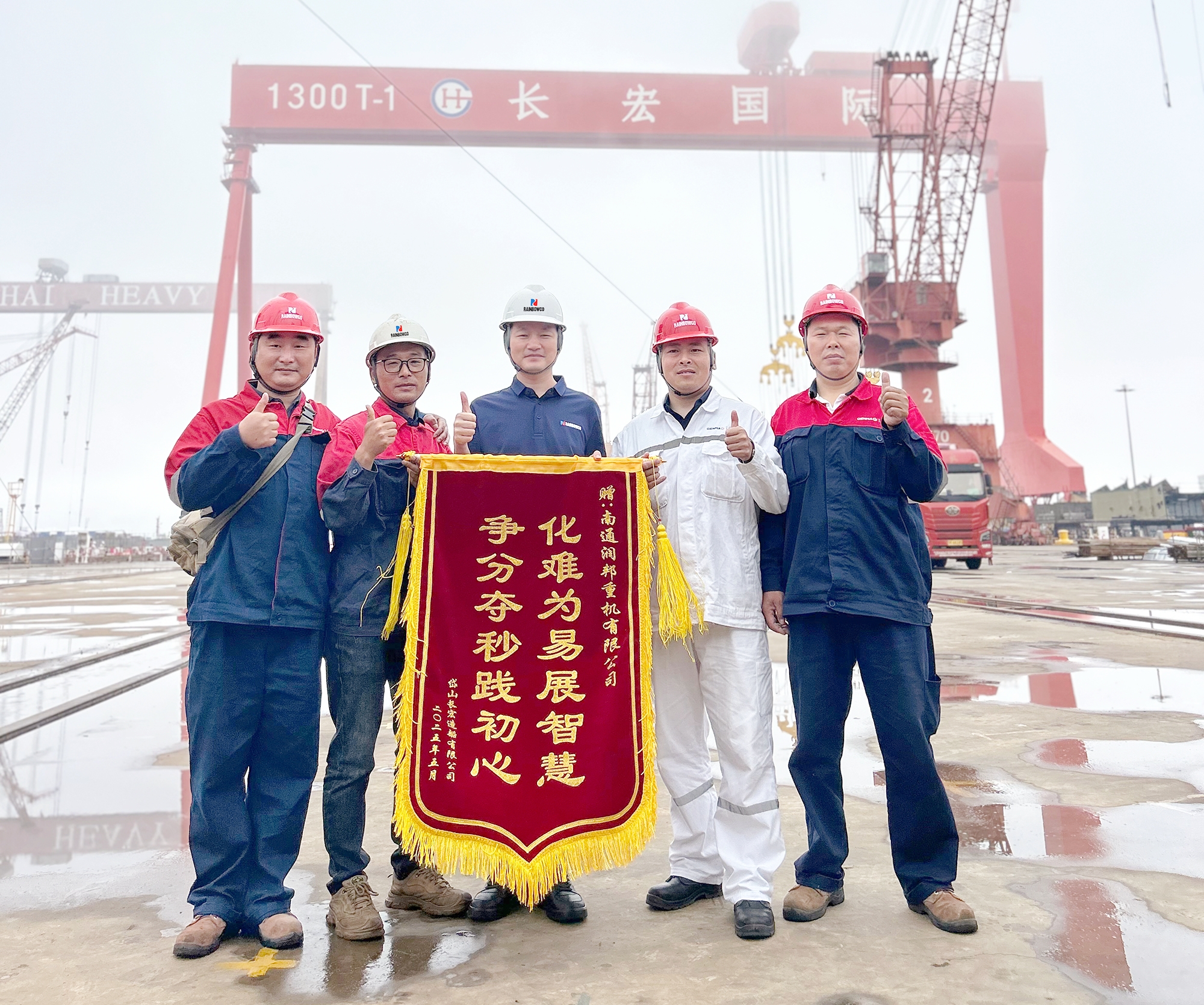 Currently, the first crane of this model has passed the type test and special equipment inspection with outstanding performance. The second unit is now in the final assembly lifting phase. Both cranes were manufactured by Nantong Rainbow Heavy Machineries Co., Ltd.