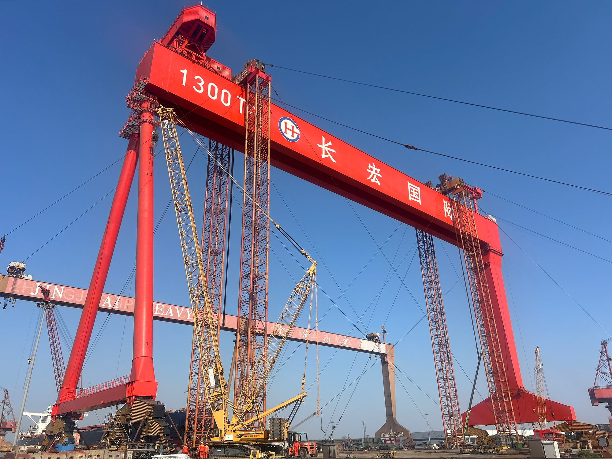 The GENMA 1,300-ton gantry crane features an advanced intelligent control system with anti-sway technology and real-time monitoring, significantly enhancing lifting precision and safety—ideal for assembling large ship structures and heavy equipment.
