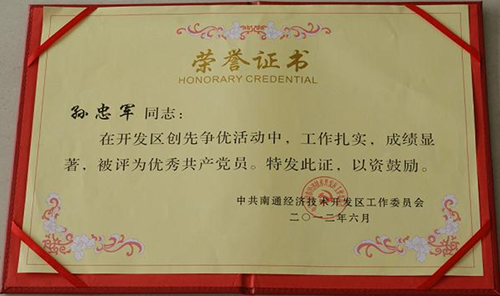 近日,江蘇潤邦重工股份有限公司黨支部被中共南通經濟技術開發區工作委員會評為“2010-2012年創先爭優先進基層黨組織”。同時,公司員工孫忠軍獲得了了由南通經濟技術開發區工作委員會授予的“2010-2012年創先爭優優秀共產黨員”稱號。
