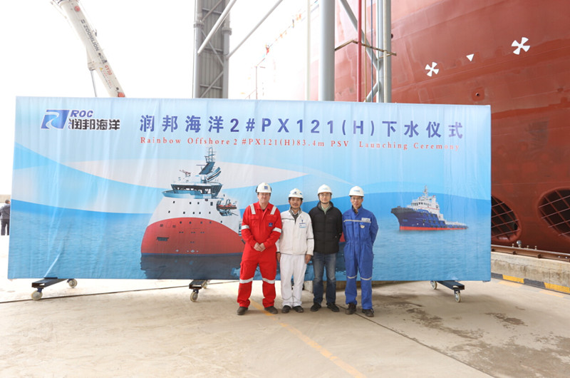 子公司潤(rùn)邦海洋2#PX121(H)83.4m PSV 成功下水