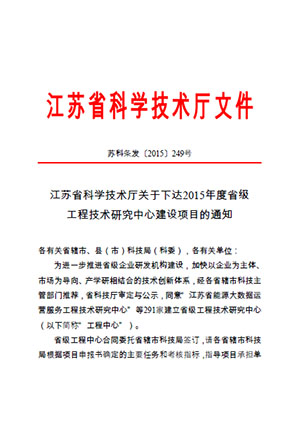 潤邦卡哥特科榮獲“江蘇省工程技術研究中心”資質