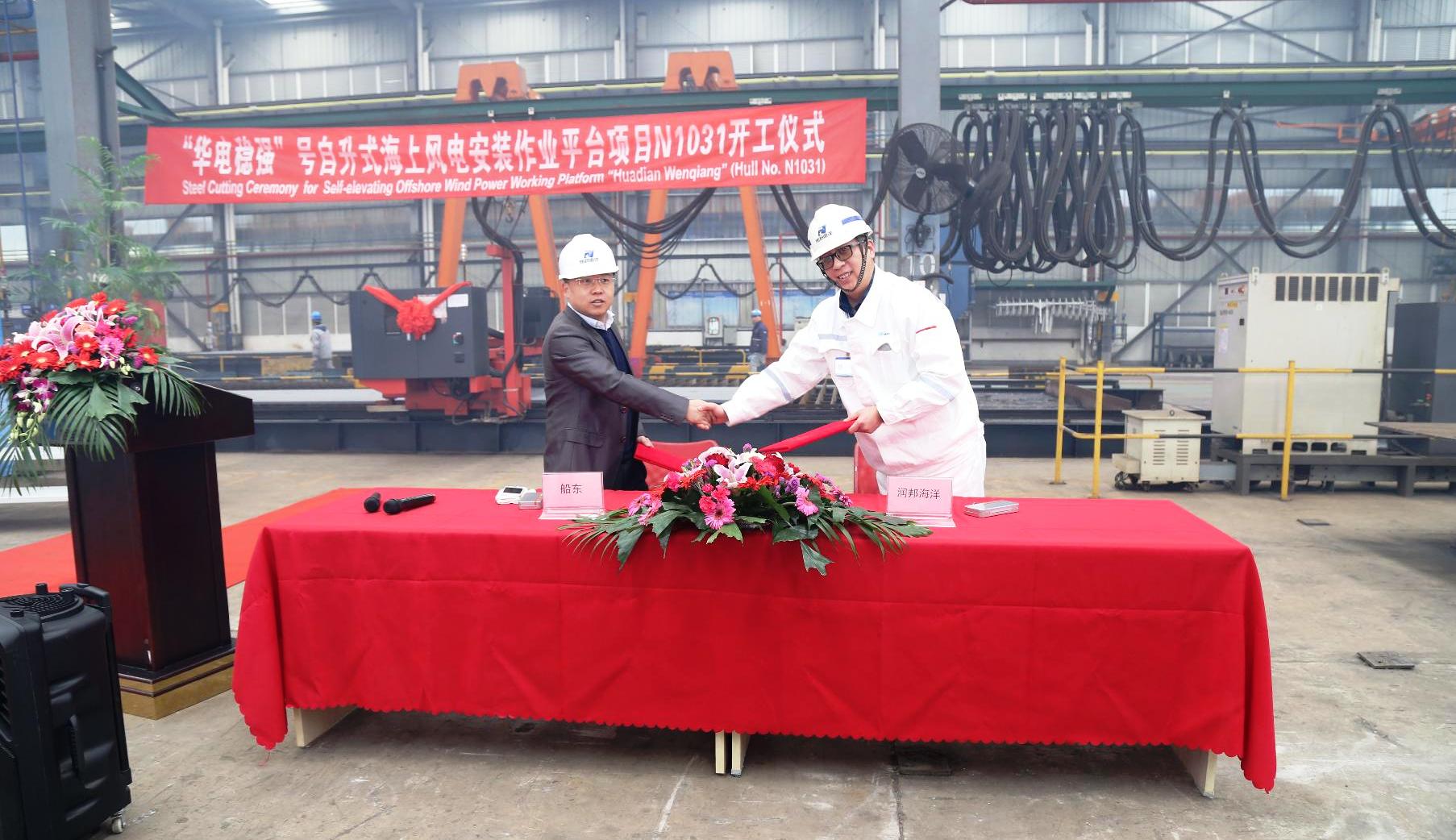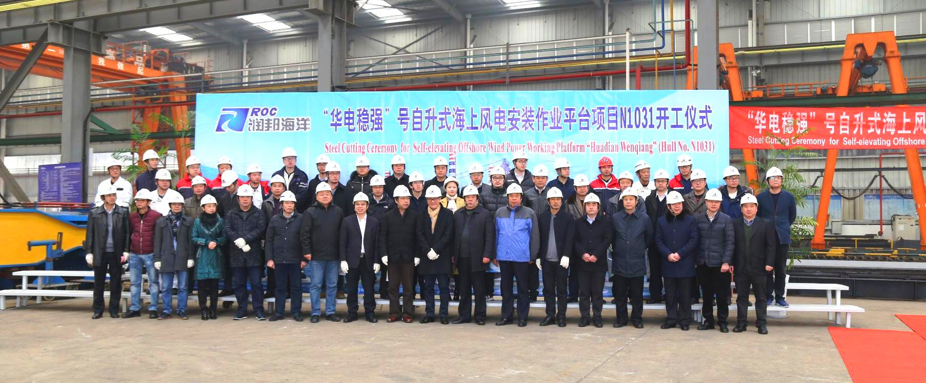2018年1月19日上午10點(diǎn)18分,“華電穩(wěn)強(qiáng)”自升式海上風(fēng)電安裝作業(yè)平臺(tái)項(xiàng)目正式開工。來自國內(nèi)多家海洋風(fēng)電行業(yè)知名企業(yè)的高層領(lǐng)導(dǎo)、銀行代表、政府代表、CCS船級(jí)社代表、潤邦股份管理層參加了開工典禮儀式。