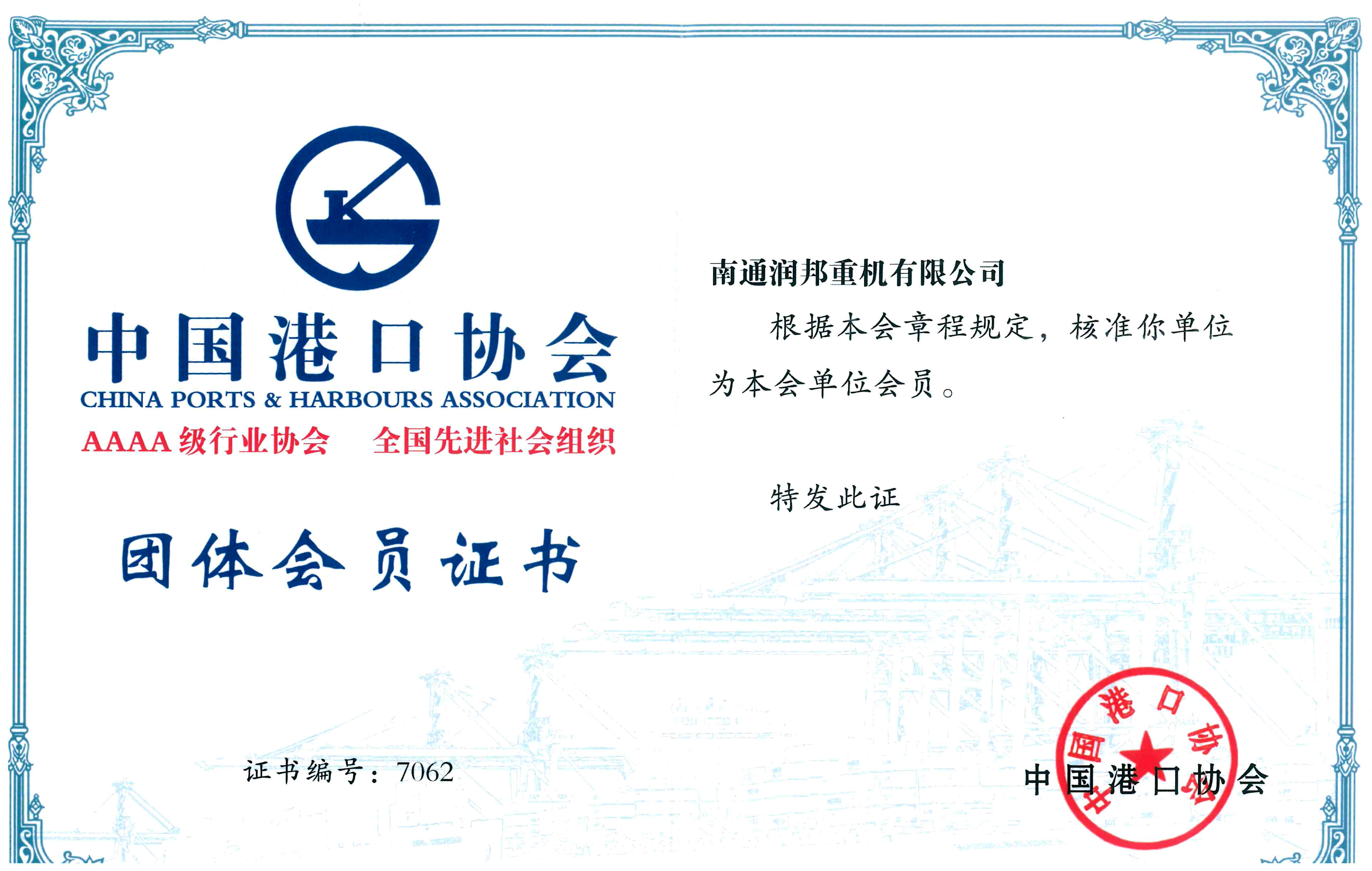近日,子公司潤(rùn)邦重機(jī)加入中國(guó)港口協(xié)會(huì),成為其會(huì)員單位。
