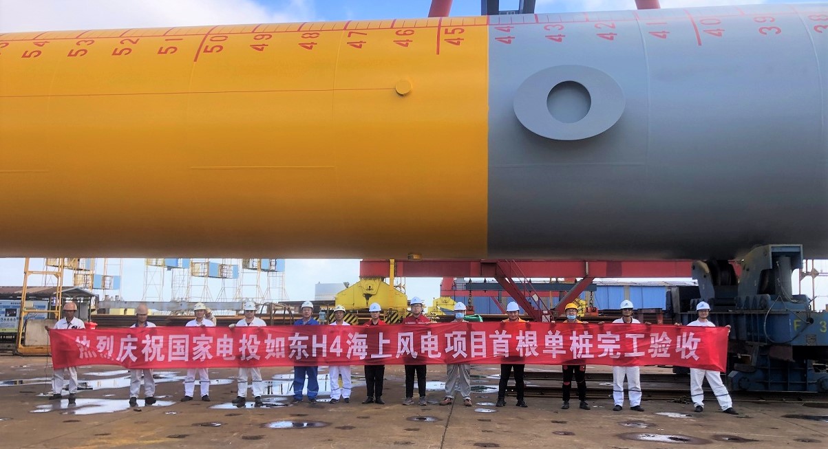 2020年5月26日,經(jīng)過各方20天不分晝夜的努力,國家電投江蘇海上風(fēng)力發(fā)電有限公司如東H4項(xiàng)目首根單樁79#樁成功發(fā)運(yùn)。
