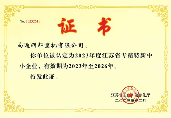 近日,子公司潤邦重機憑借其在高端裝備領域的專業表現與持續創新力,榮獲2023年“江蘇省專精特新中小企業”認定。