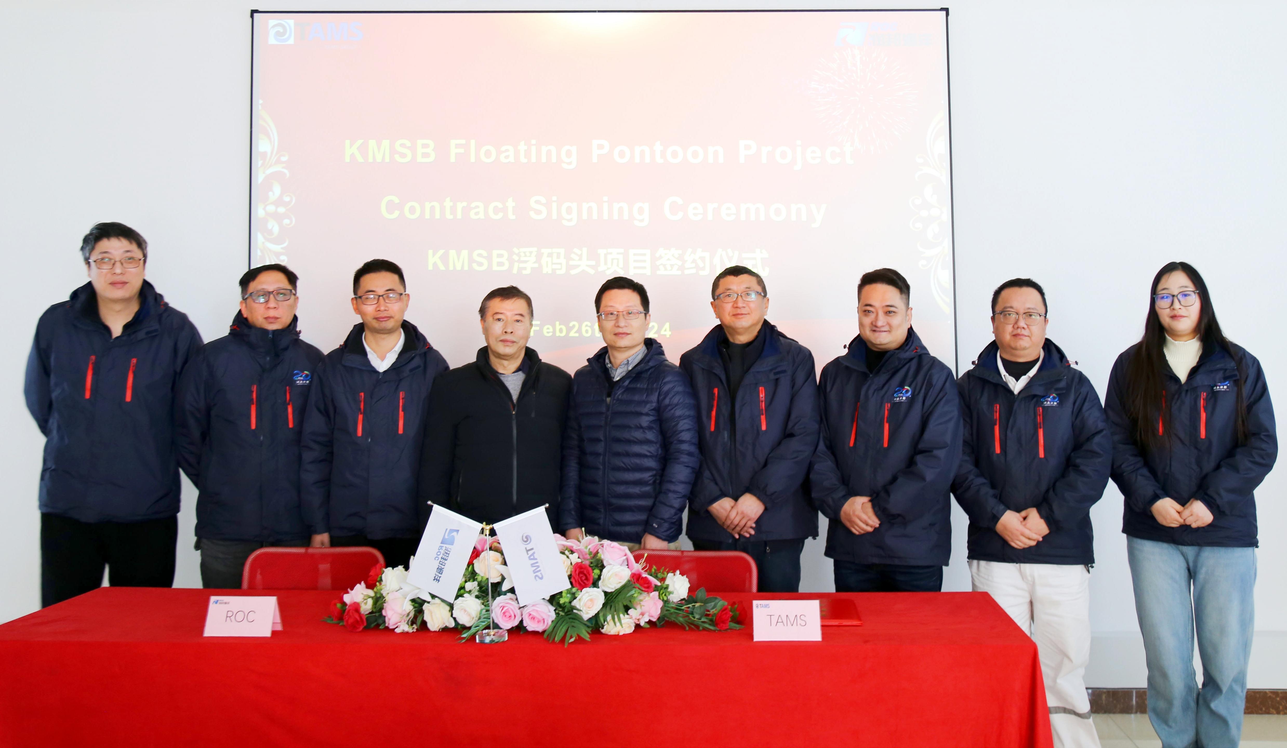 近日,子公司潤邦海洋與澳大利亞TAMS集團舉行KMSB Floating Pontoon項目簽約儀式,TAMS集團Jason先生,潤邦海洋總經理邵夕吾、常務副總經理方如意等相關領導出席。雙方成功簽約,標志著雙方攜手發展、合作共贏的新征程正式開啟。