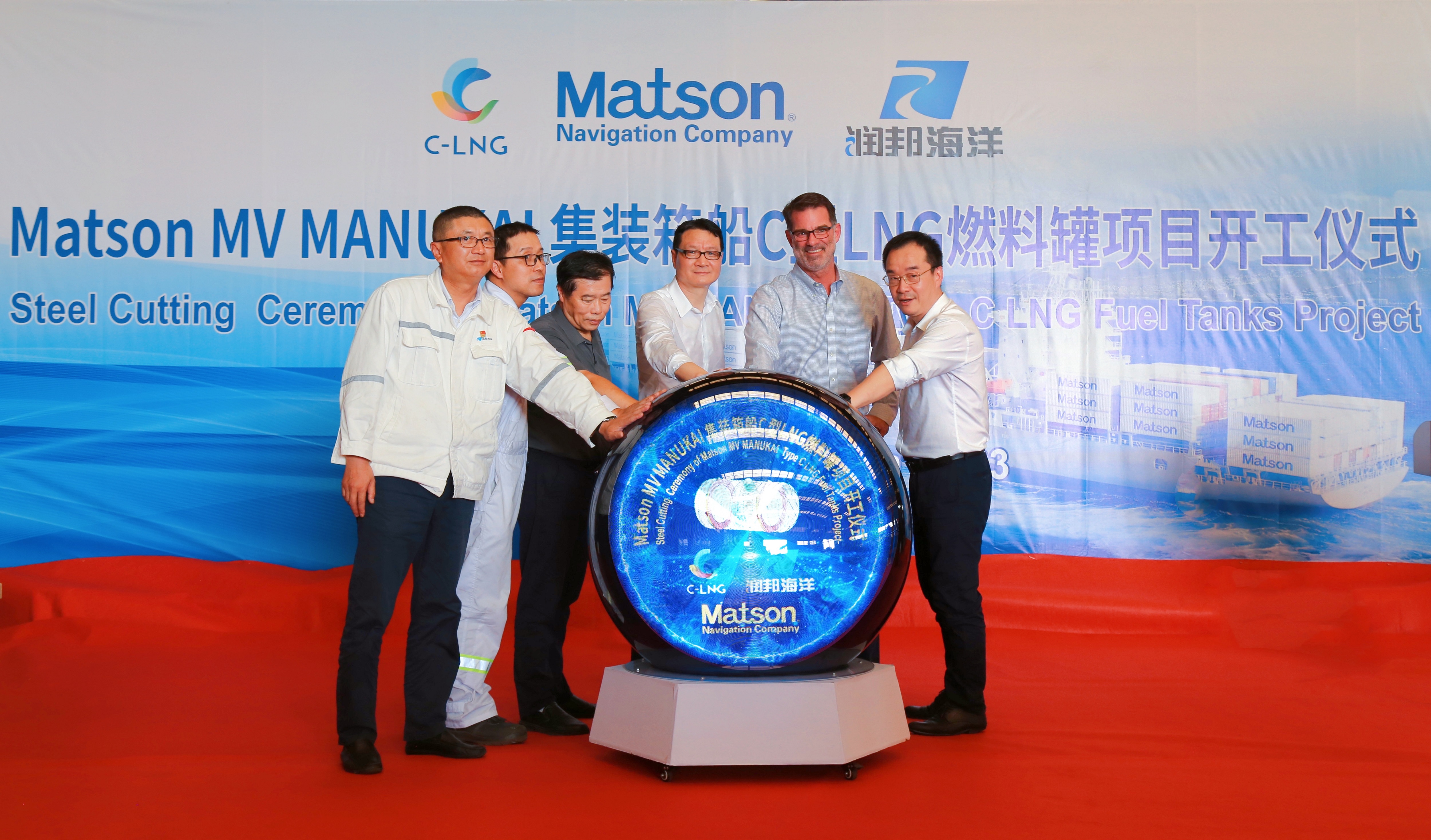 近日,子公司潤邦海洋承接國外客戶的不銹鋼LNG燃料罐的開工儀式在潤邦海洋的下料車間隆重舉行。Matson集團(tuán) Gartz先生,ABS驗(yàn)船師蔣鵬先生,C-LNG總經(jīng)理解利來先生,潤邦股份總裁吳建先生等相關(guān)領(lǐng)導(dǎo)出席儀式,共同見證這一重要時(shí)刻。