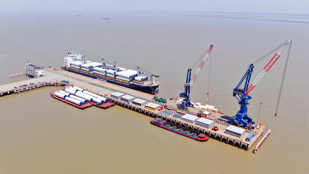 5月4日22時許,隨著最后一段塔筒穩(wěn)穩(wěn)落入甲板,“立德星”輪110段塔筒在潤禾碼頭完成全部裝載作業(yè),4天半時間完成110段塔筒裝船創(chuàng)造了潤禾碼頭開港以來裝運塔筒單船數(shù)量與裝船速度的新記錄。