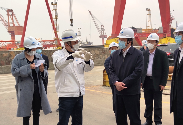 近日,啟東市市委王曉斌書記、高廣軍副市長、海工園區黃紅春書記等領導赴潤邦海洋,實地調研企業復工復產、疫情防控等工作情況。
