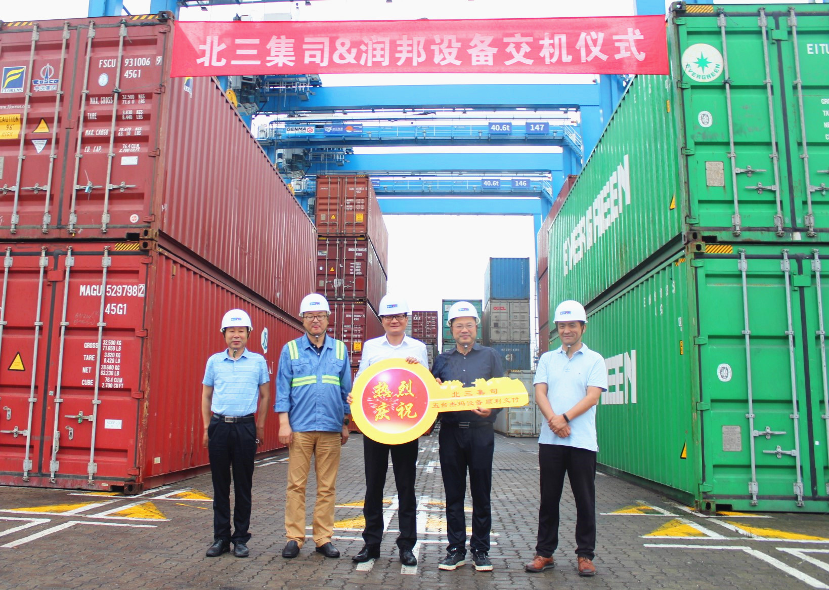近日,潤邦股份董事長、總裁吳建先生應邀到訪寧波舟山港寧波北侖第三集裝箱碼頭有限公司(以下簡稱北三集司),參加子公司江蘇潤邦工業裝備有限公司(以下簡稱潤邦工業)K116項目五臺杰馬設備(輪胎式集裝箱起重機)交機儀式并為潤邦自動...