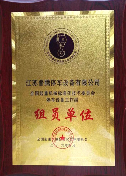 近日,江蘇普騰正式成為“全國起重機械標準化技術委員會停車設備工作組”組員單位。