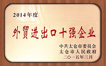 近日,在太倉市經濟工作會議暨2014年外貿進出口企業表彰大會上,子公司潤邦卡哥特科被授予“2014年度外貿進出口十強企業”榮譽稱號。