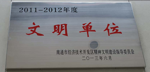 近日,公司獲得了由南通市總工會和南通市安全生產監督管理局聯合授予的“2012年度南通市‘安康杯’競賽優秀組織單位”稱號。
