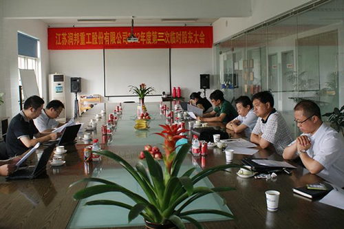 2012年8月16日,江蘇潤邦重工股份有限公司召開了2012年度第三次臨時股東大會,會議由公司董事長吳建先生主持。本次會議審議并通過了《關于修訂<公司章程>的議案》。